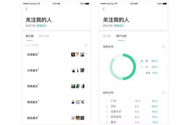 .及時(shí)查看新關(guān)注用戶(hù)的信息,或通過(guò)排行榜了解最關(guān)心你的用戶(hù)。